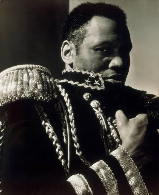 As I wrote in the biography, and also, right here on this very blog, since the 19th century, Black actors have craved the chance to play King Henry Christophe. The famous American-born Black actor Ira Aldridge was the first to seize the opportunity when he played the Haitian King in J.H. Amherst’s “Death of Christophe, King of Hayti” in the 1820s at London’s Coburg Theatre. Aldridge was followed by a string of stars from all over the world: Jack Carter, Rex Ingram, William Dubois, Errol John, and Douta Seck, to name just a few. Yet perhaps the most famous Black actor who longed to play Christophe was Paul Robeson.