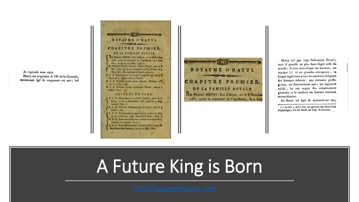 For a long time, historians disagreed about the origins of Haiti’s first and only king, Henry Christophe. Yet in my recently published biography, The First and Last King of Haiti, I tried to close the case by first pointing out that in the six different versions of the Almanach royal d’Hayti, published out of the royal press of Haiti from 1814 to 1820—and hailed by bibliographer Ralph T. Esterquest as the “Burke’s peerage for Christophe’s grandiose kingdom”—the king’s date of birth is definitively listed as October 6, 1767.