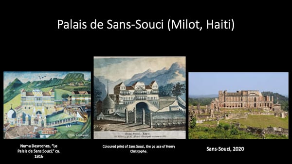 By 1813, the Kingdom of Haiti under Christophe had an even larger system of nobility, which now included the Baron de Vastey, and Christophe lived in a beautiful palace, richly adorned with complex architectural details that rivaled the most opulent structures in old Europe. Yet the construction of this palace, called Sans-Souci—some say in lugubrious recognition of the man Christophe had killed, others say after Frederick the Great’s summer chateau in Germany—led to the charges that, although he proudly proclaimed himself to be the “first monarch crowned in the New World,” the Haitian king had merely brought to it old-world despotism.