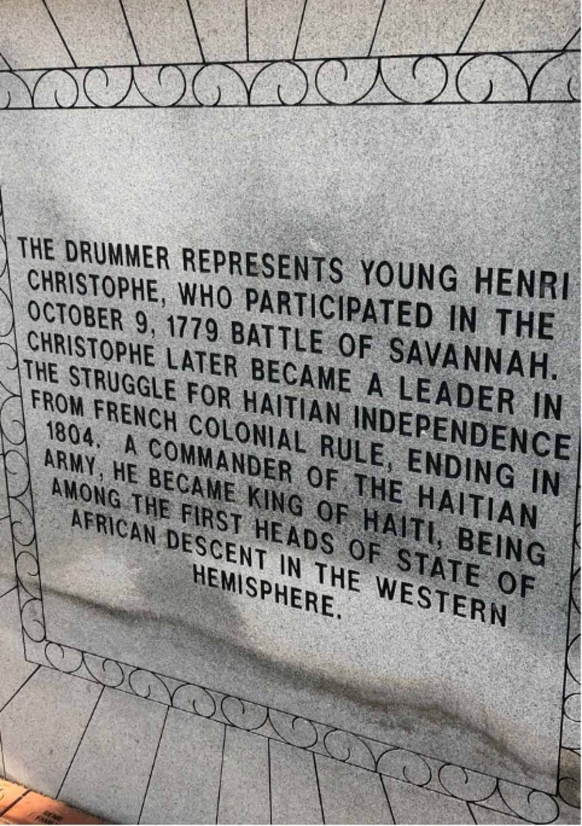 Christophe was not the only Black soldier from the Caribbean to fight for U.S. freedom. Joining him was Louverture’s storied rival André Rigaud and fellow free men of color Vincent Ogé and Jean-Baptiste Chavannes. A monument to these fighters, called the Chasseurs-Volontaires, sits today in a shady square in Savannah, Georgia, depicting Christophe as a drummer boy.