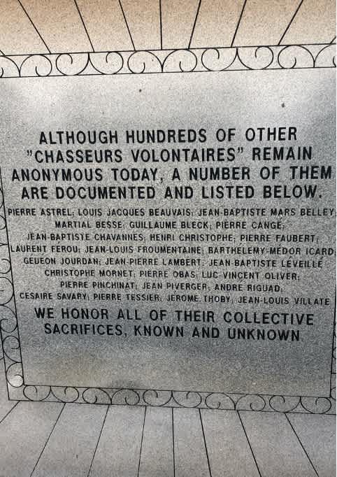 (Base of the Savannah Monument to the Haitian Chasseurs-Volontaires, Franklin Square, Savannah, Georgia, copyright 2021)
