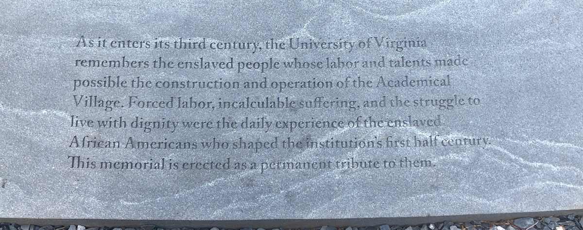 (UVA Memorial to Enslaved Laborers, August 2020. Photo Credit: Marlene L. Daut)
