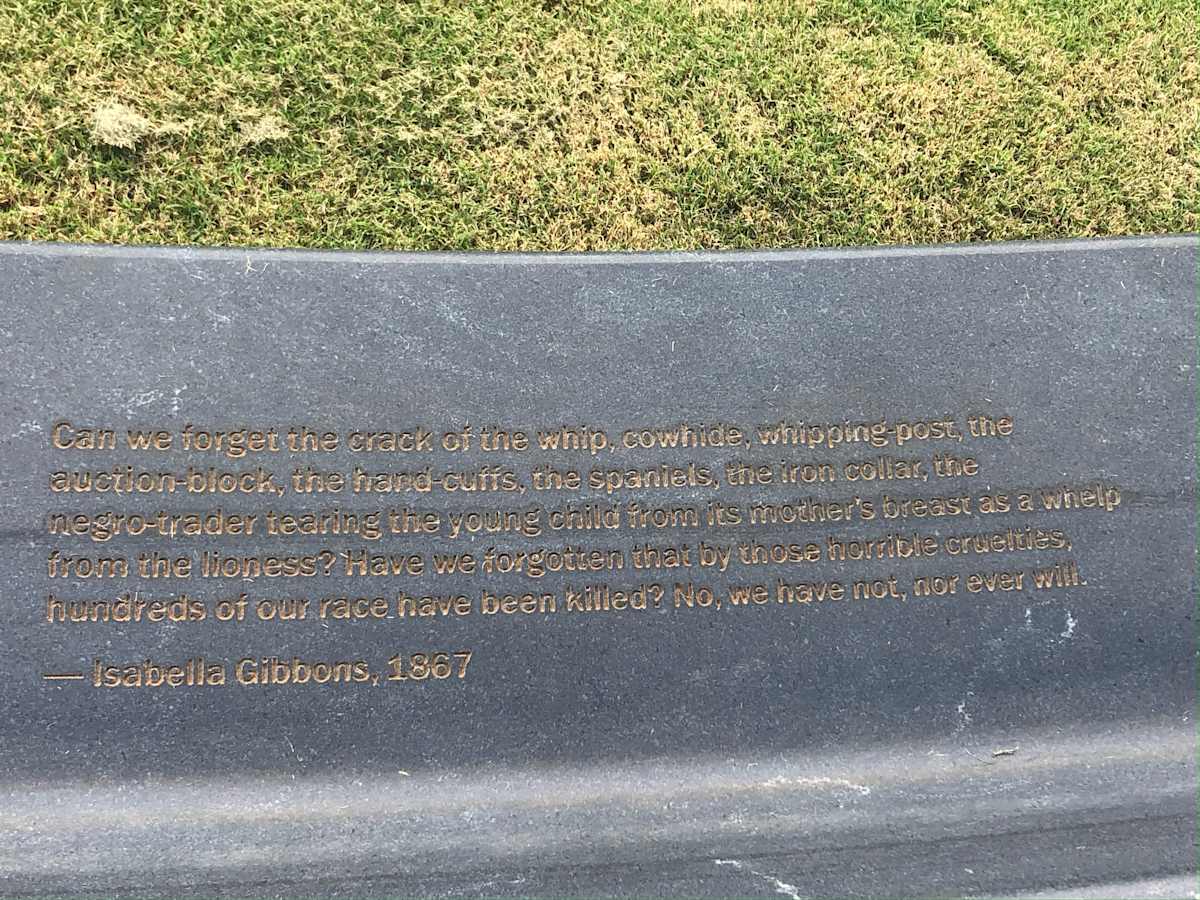 (Damning 1867 quotation from Isabella Gibbons, a woman formerly enslaved at UVA, August 2020. Photo Credit: Marlene L. Daut)