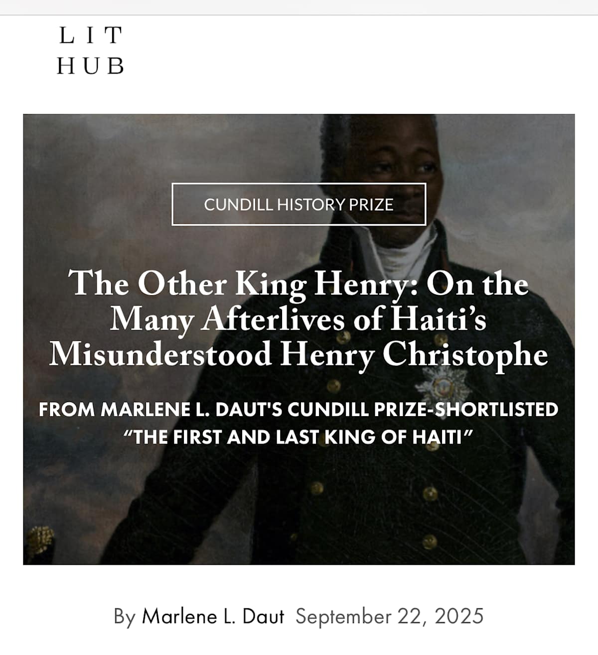 LitHub just posted an excerpt from my Cundill Prize shortlisted book, The First and Last King of Haiti: https://lithub.com/the-other-king-henry-on-the-many-afterlives-of-haitis-misunderstood-henry-christophe/